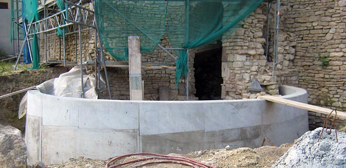Kaiserpfalz IngelheimDie Kaiserpfalz in Ingelheim ist eine bedeutende Pfalz, die in der zweiten Hälfte des 8. Jahrhunderts errichtet wurde. Bis ins 11. Jahrhundert diente sie Königen und Kaisern als Aufenthalts- und Regierungssitz sowie als zentraler Ort für Reichsversammlungen. Heidesheimer TorDie Sanierungsmaßnahmen betrafen unterschiedliche Teile der Kaiserpfalz in Ingelheim. Am Heidesheimer Tor mit seinen angrenzenden Gebäudeteilen wurde das Mauerwerk instandgesetzt und gesichert (Vernadelung). Außerdem entstand hier über freigelegten historischen Grundmauern ein Besichtigungssteg. Eine Betonschale umschließt diesen tiefer liegenden Bereich und sichert ihn nach außen. Staufische WehrmauerAm Bolanderturm wurde der Turmschaft saniert und ein eingestürzter Teil der staufischen Wehrmauer unter Verwendung des historischen Materials wiederaufgebaut. Am Zuckerberg wurden ebenfalls Sanierungsarbeiten ausgeführt.